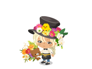 帽子のシルクハットがお花畑みたいになっていますが