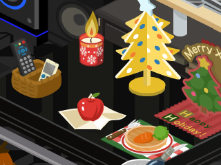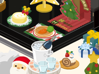ピグ本家の方でもクリスマスらしいアイテムを飾ってありますが、このテーブルにあるにんじんはペットのごはんですよ笑。うさぎの餌です。ピグは食べることができません。