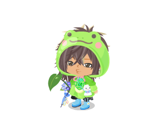 どうですか?可愛くないですか?手にはあじさいを持っています。長靴もはいていますね。