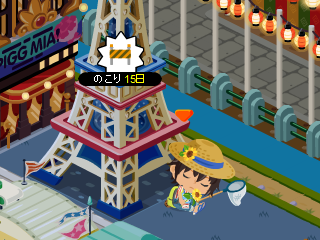 エッフェル塔かな?の再開発中…。ピグちゃんの格好が夏仕様になっていますね。管理人の大好きなひまわりの麦藁帽子です