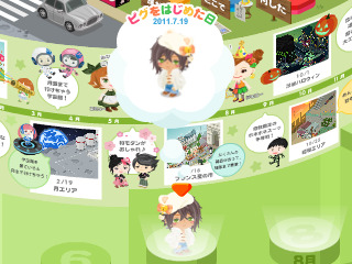 2011年のエリアですemoji 管理人がピグを始めたのがこの頃ですemoji 7月の台座が光っていますよね、丁度7月に始めたのでここが光っているんですねemoji この頃に会員数が1000万人を突破ってすごいですねemoji ピグライフemojiが登場したのもこの頃なんだそうですよ!