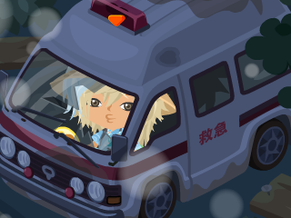 救急車が止められていたので、乗り込んで休憩しました笑。車内だと安心…?