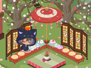 お花見のお座敷でうとうとするピグちゃんemojiemoji