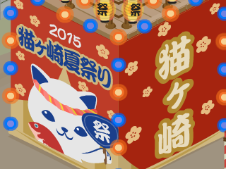 こちらが猫ヶ崎の盆踊りエリアです。ここでピグが盆踊りをします笑。ここを踊りながら周るんですよ。それがめちゃくちゃ可愛いんです笑。太鼓の音が鳴り響いていたり、お祭りらしさが良くでていて楽しいです。