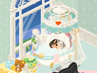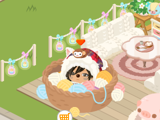 こちらもピグちゃんのお部屋です。ねこのバスタブを置いてみました。あわあわでいい感じです