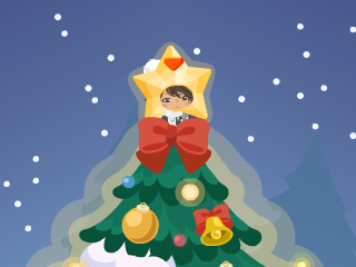 巨大なクリスマスツリーに登った後、そこから落下するとランダムでこのように変身することができます。