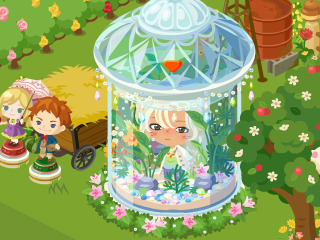 お庭の着せ替えアイテムの一部です。キラキラ光るカツラというのは初めてのものなので記念撮影をしたんだと思います。もちろんこれも初回無料ガチャで当たったものですemoji