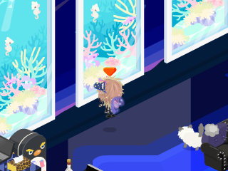 お部屋でも小さくなっていますemojiなので水槽がいつもよりずっと大きい…。後ろにはローラがいますが、ローラもおっきくてピグと同じくらいの大きさになっています。