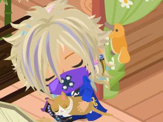 ピンクのリボンをしたにゃんこは、動物イベントで貰えた猫の子です。