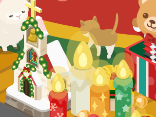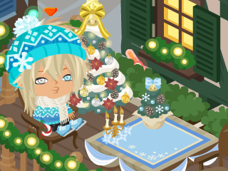 そしてピグ本家でもクリスマスの模様替え。この年はホワイトクリスマスツリーにしたみたいです。ピグ友さんに貰ったキャンドルも飾ってあります。