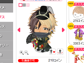 この衣装はガチャアイテムです。これもPポイントでコインと交換したものでガチャを回して手に入れました。課金はしていません。課金ガチャは闇が深すぎます。