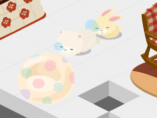 この猫耳帽子を被ったピグは、管理人が作ったサブピグです。ライフで水友さんにお手伝いに行く時など、サブピグがいると便利なのです。一日の水遣り回数は決まっているので、サブがいればそのぶん多くお手伝いができるので。完全にライフ廃人ですね笑。