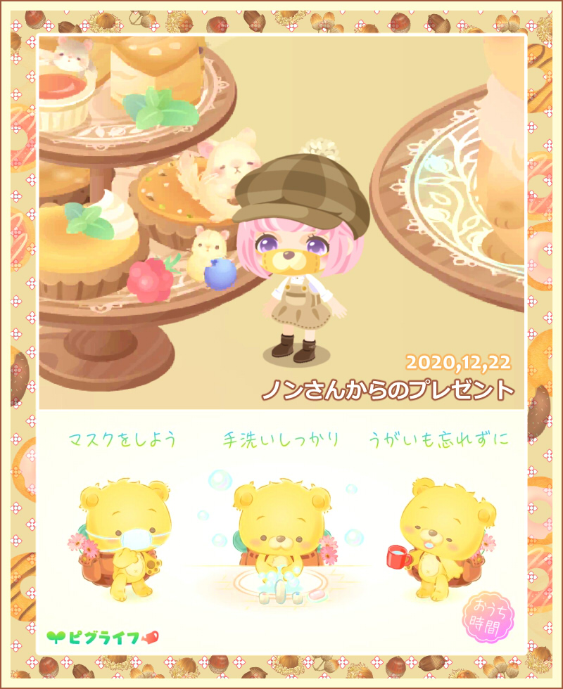 ピグライフ日記は前回に引き続き。手編みのマフラーのお話は今回で完結みたいです。
