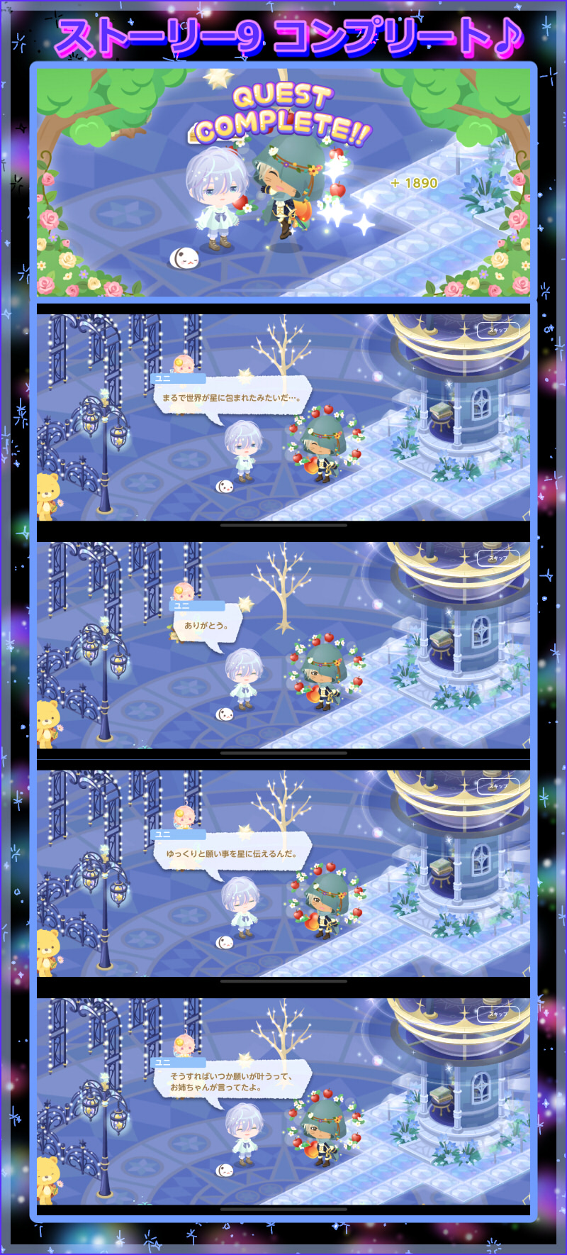 16日から始まった白雪姫のイベントまでにストーリー9-12までをコンプリートemojiしましたemoji “イフェイオンの気持ちemojiを貰ったところまでです。今回登場した新キャラ(ユニ)が可愛いのと、アイテムも綺麗なのでかなりやる気が出ましたemoji 白雪姫のイベントを終わらせて早くコンプリートしたいです。白雪姫の方はアイテムがあまり好みじゃないのでやる気がでません…emojiemoji