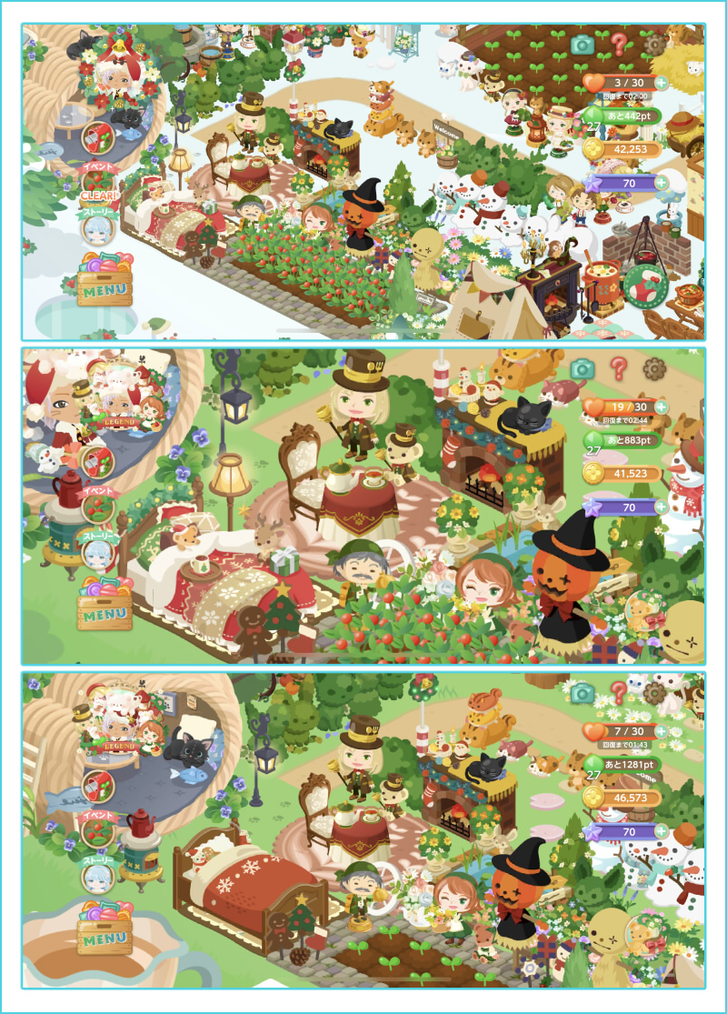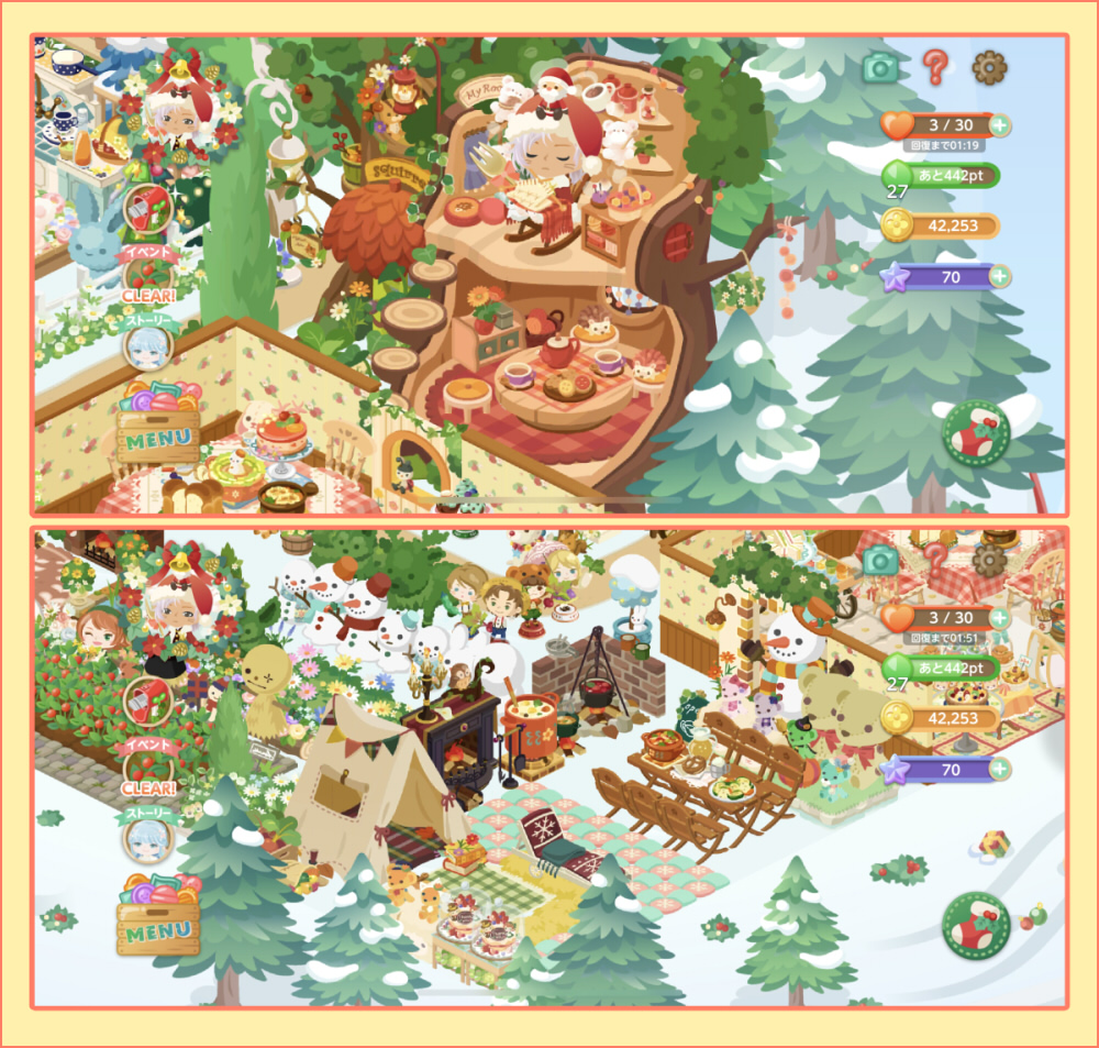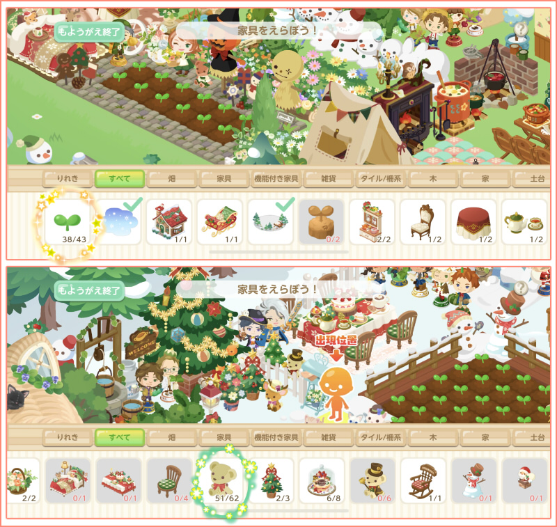 アイテムの上限が500個なので雪タイルなどはあまり使えないのが残念ですね。本家ピグライフの方では飾れるアイテムの上限がなくて模様替えの制限なしに楽しめたのですが…。スマホ版なので本家と比べても仕方ないですけどね