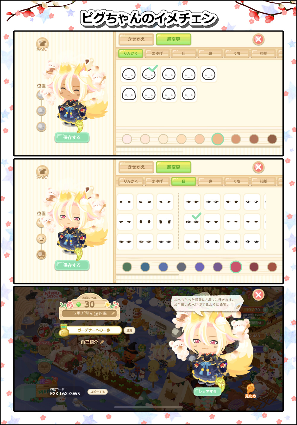 ピグ本家からスマホ版ピグライフへとデータを引き継いだピグちゃんは見た目もそのまま引き継がれたのですが、今回は思い切って衣装に合わせて見た目をイメチェンしてみることにしましたemoji スクショを撮った日付は2019,12,26です。