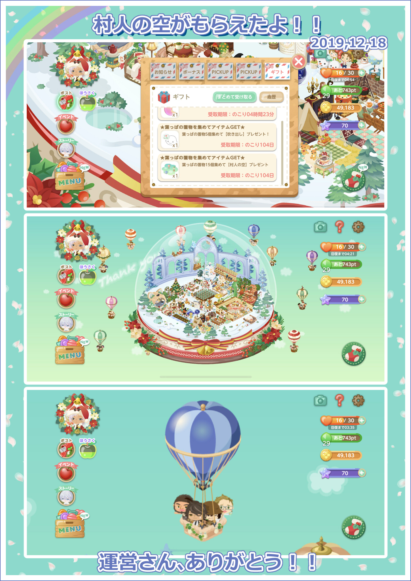 emoji村人の空emojiがようやくスマホ版ピグライフに届きましたemojiemojiemoji 届くのをずっと待っていたので嬉しいですッ(。´・∀・`。)emoji 欲しかったものが無事に届いたので一安心…。本家のキャラ達が勢揃いしているので見ているだけでも嬉しくなりますね。これでやっと落ち着けたかな。スマホ版のピグライフに愛着を持っていけそうです。ありがとう、運営さんemoji(*´ω`*)emoji