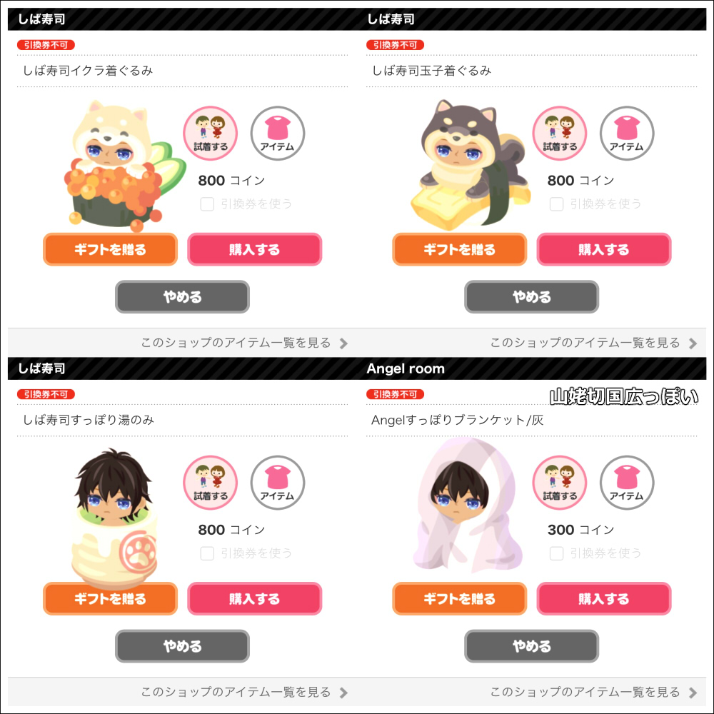 ピグの方で可愛いアイテムがあったので載せておきます。結局買わなかったけど。あ、右下の