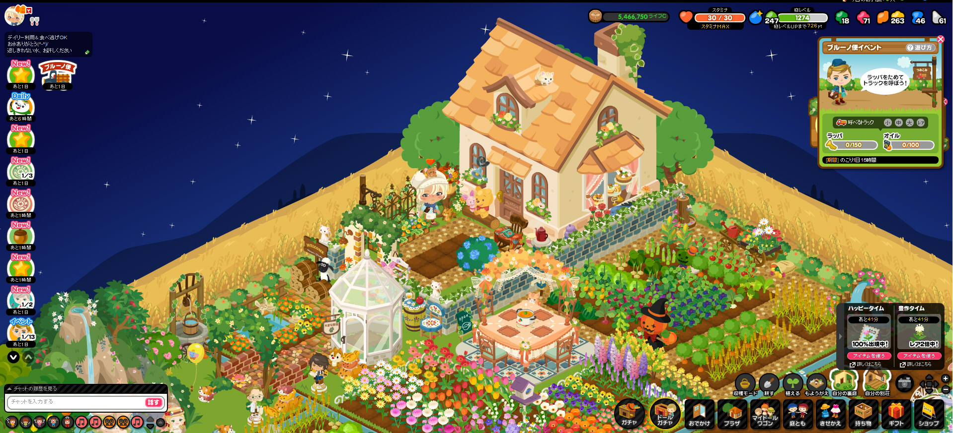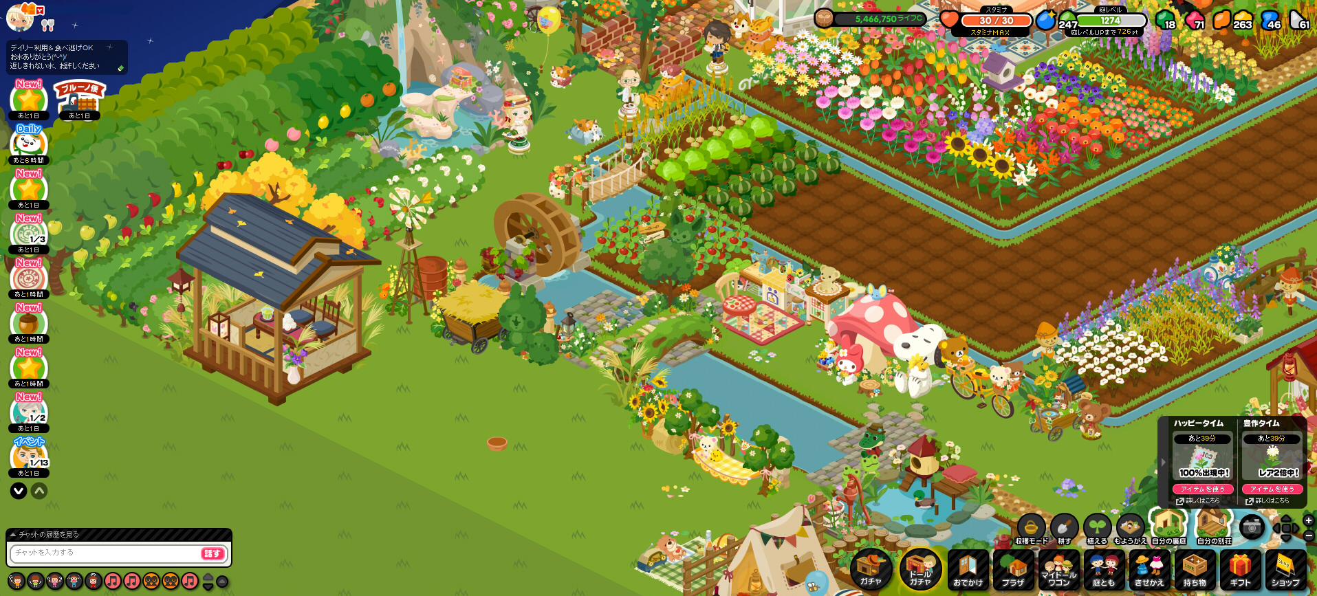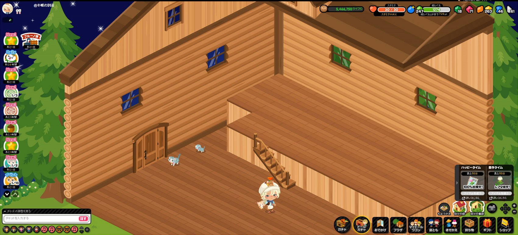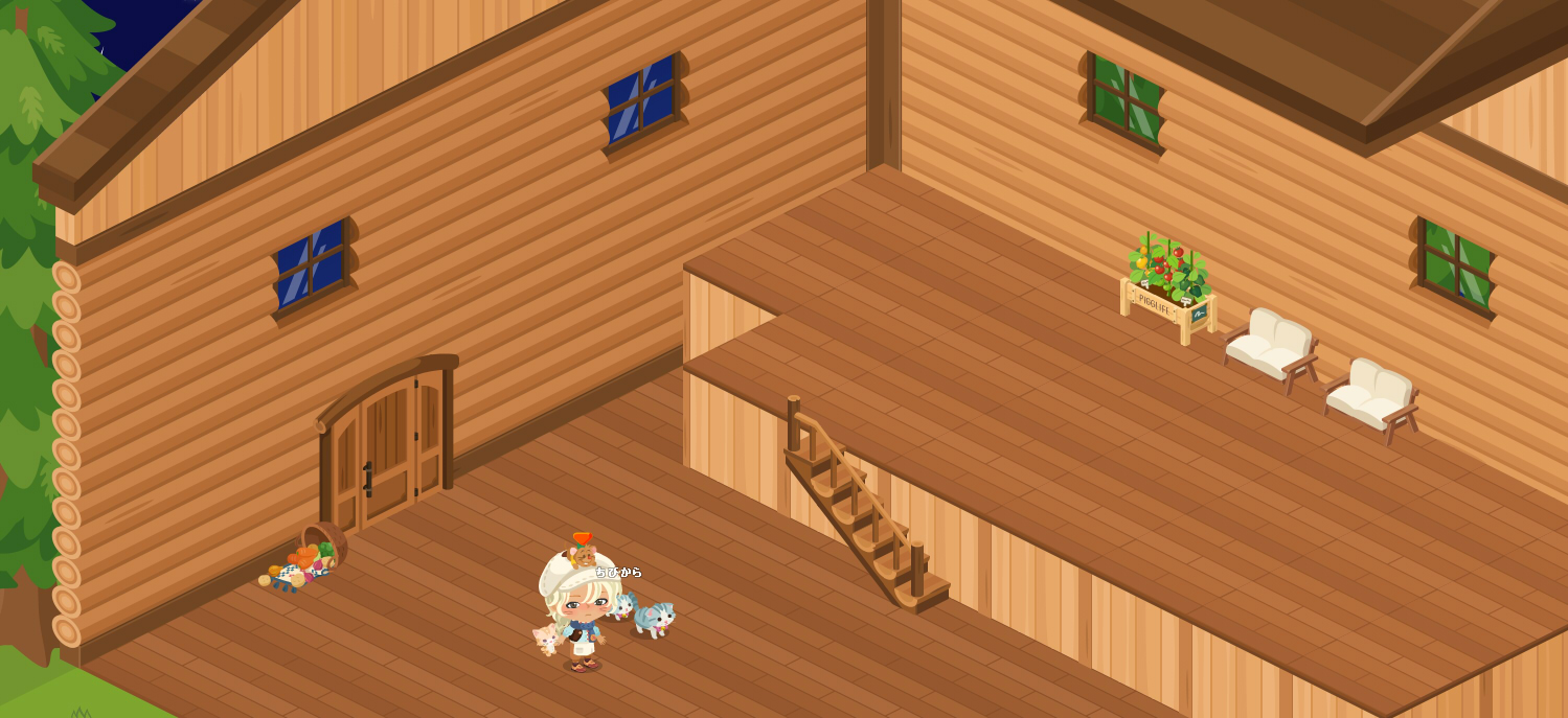 そんな風にピグライフから足が遠のいていた頃、ピグ本家の方でライフのお知らせに、新機能が追加されたとの情報がありました。お庭に別荘が造れるということでemoji 「お?別荘?それは造っておかなきゃ!」となりまして笑、久しぶりにお庭に向かったのでした。