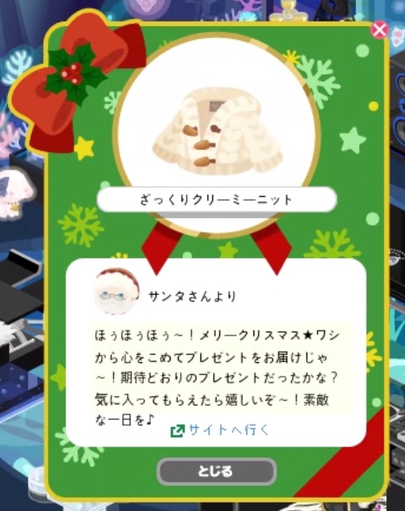 ピグにログインすると、サンタのおじいちゃんからクリスマスプレゼントが貰えますよemojiemojiemoji