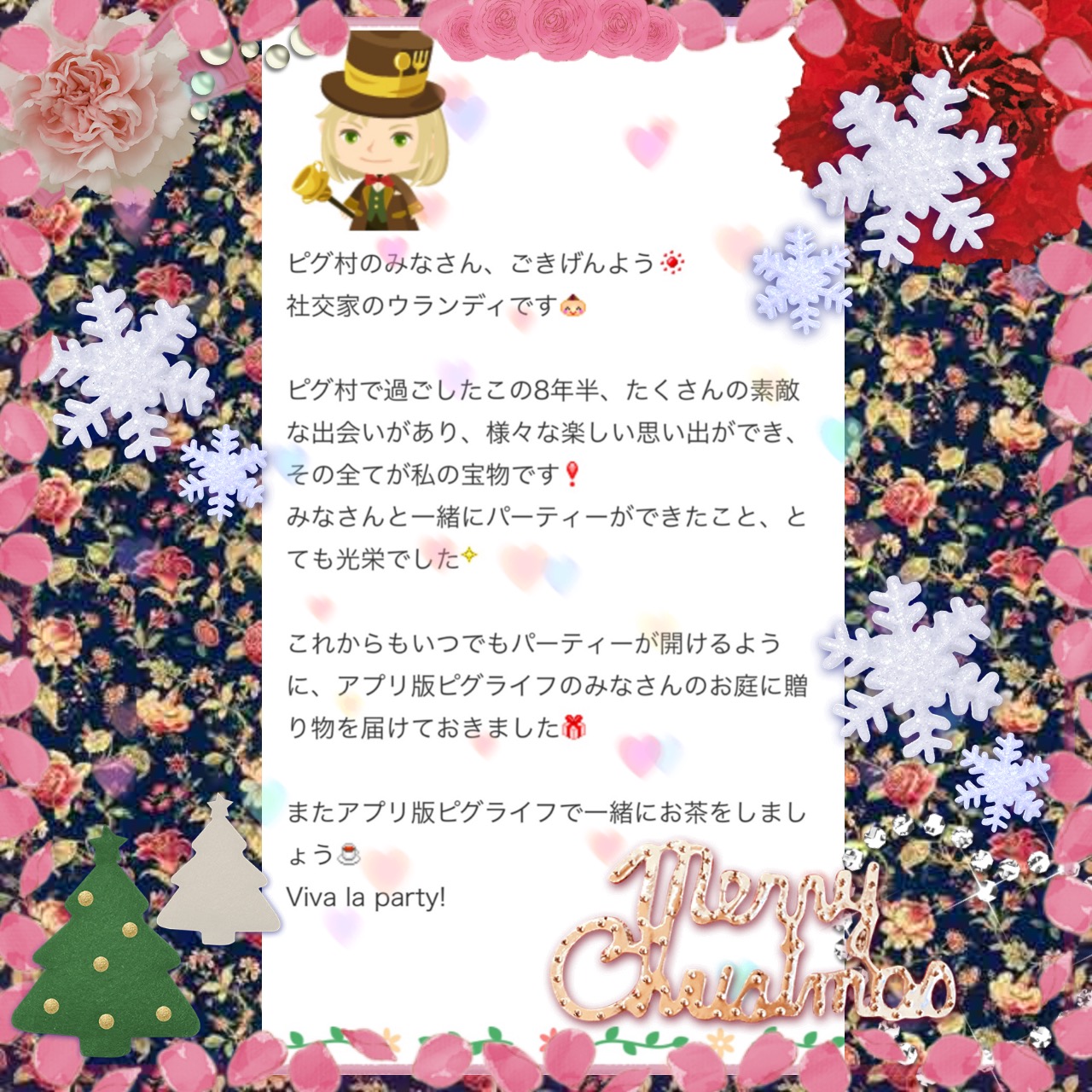 最近ではピグ本家にログインするとクリスマスemojiの食べ物アイテムが貰えますが、なぜこんなに早い時期にクリスマスのemojiってびっくりですね笑。サ終のことを考えて早めに、ということなのかな…。だとしたら少し悲しい(´;ω;`) ピグ本家にログインできるのも後わずかですねぇ…。勿論、サ終するまでの期間毎日ログインしますよemoji ほんとになくなるのかなぁ、ちょっと実感がわきません。う~んemoji 考えても仕方ないので…!