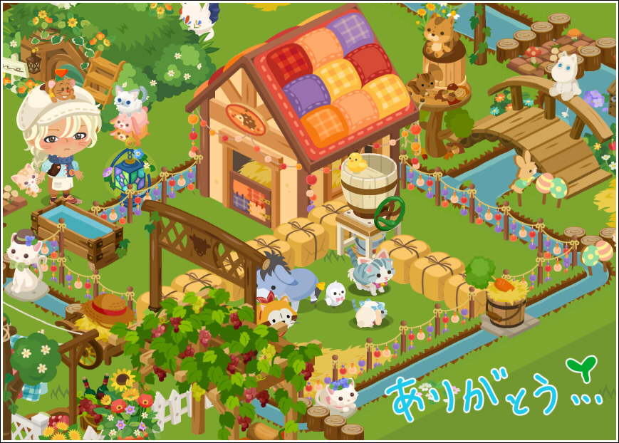 にゃんことうさぎともふもふアルパカたちに囲まれて幸せなピグちゃんemoji ああ…離れたくないなぁemojiemoji