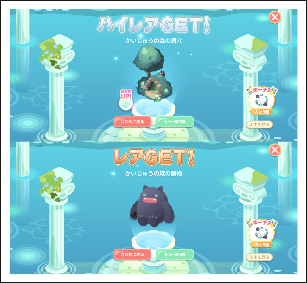 ガチャではここまで揃ったんですけど、目当てのものが出なくて残念です…。今回はやたらSレアが出ました。欲しいのはレアアイテムだったんですけどね(;^ω^)emoji