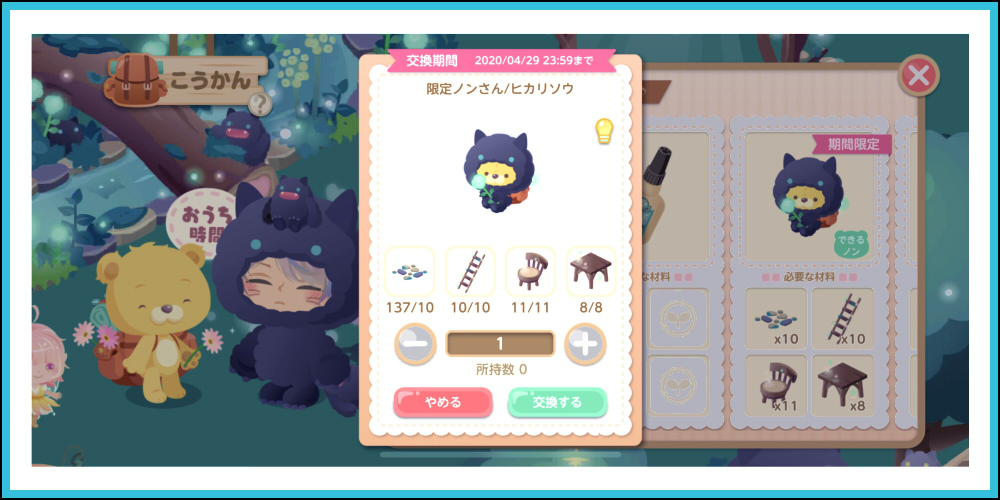結局、次のイベントに突入したことでお皿集めができなくなったので今回は見送ろうと思います。お皿なので一応は好きなタイミングでクエストを進められますからね。なので前にゲットできていた限定ノンさんだけ載せておきます。