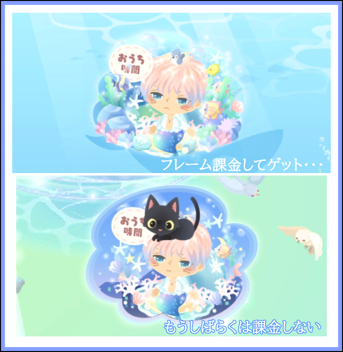 今回かなりの課金emojiをしました。課金をしたのはお正月の“あけおめ2020年のMyフレーム”以来かと思います。まずイベントガチャのステップアップで貰えるフレームに数千円と(計算してない)、ミネルラのお店で買えるアニメ付きの黒猫のMyフレームに数百円(幾らか忘れた)課金しました。どうしても欲しかったので課金しましたが、今後は余程欲しいものがない限り課金はしません…。また本家アメーバピグのように課金しないようにしないと(;^ω^)emoji 重課金ではないですけどね。