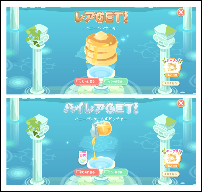 今回はガチャも多めに回しました~(*'ω'*)emoji レアのパンケーキが欲しくて回したので、ゲットできて良かったですemoji