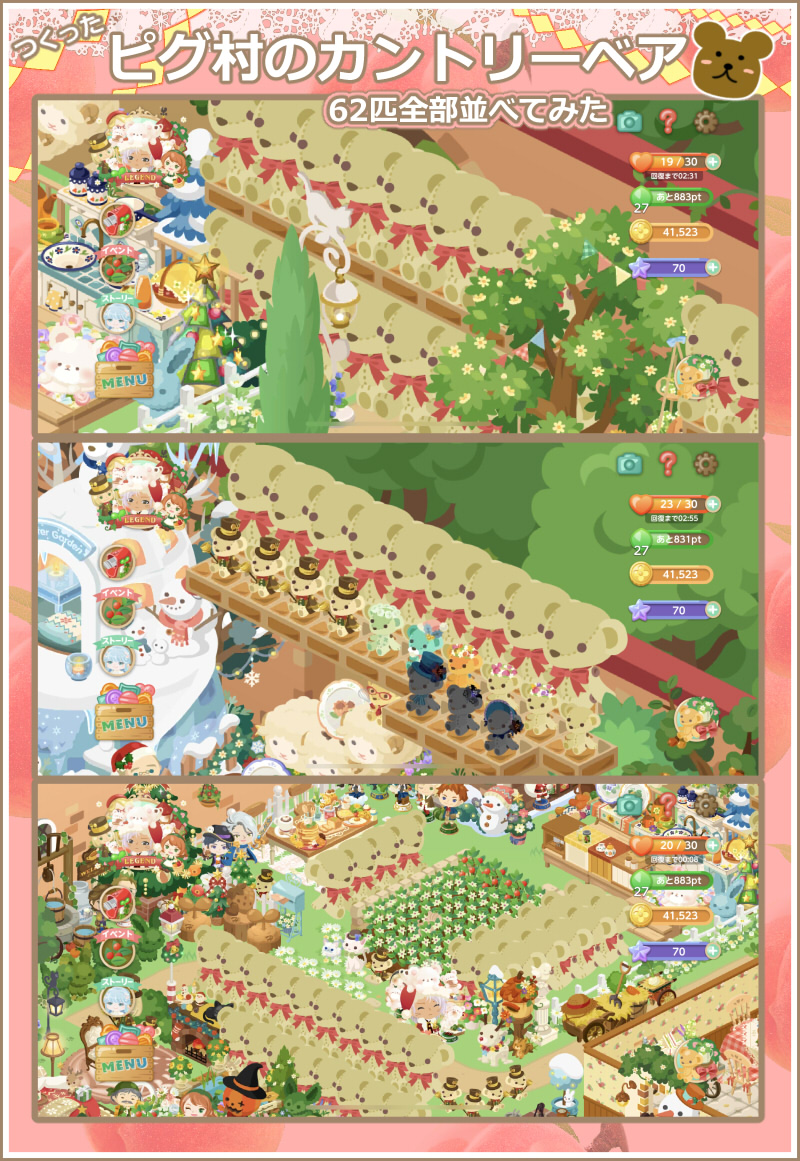 62匹でした!かなりの数になったけどほんとは100匹くらい作りたかったです笑。スクショは62匹全て飾って撮りましたが一部見切れていて見えませんね