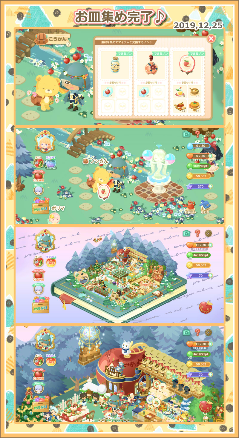 一番早くコンプリートできたと思います。コンプした時点で残り3日の猶予がありましたからね~。お皿集めは8日になった今もミッション進行中ですが、今回も期間内に達成できるでしょう
