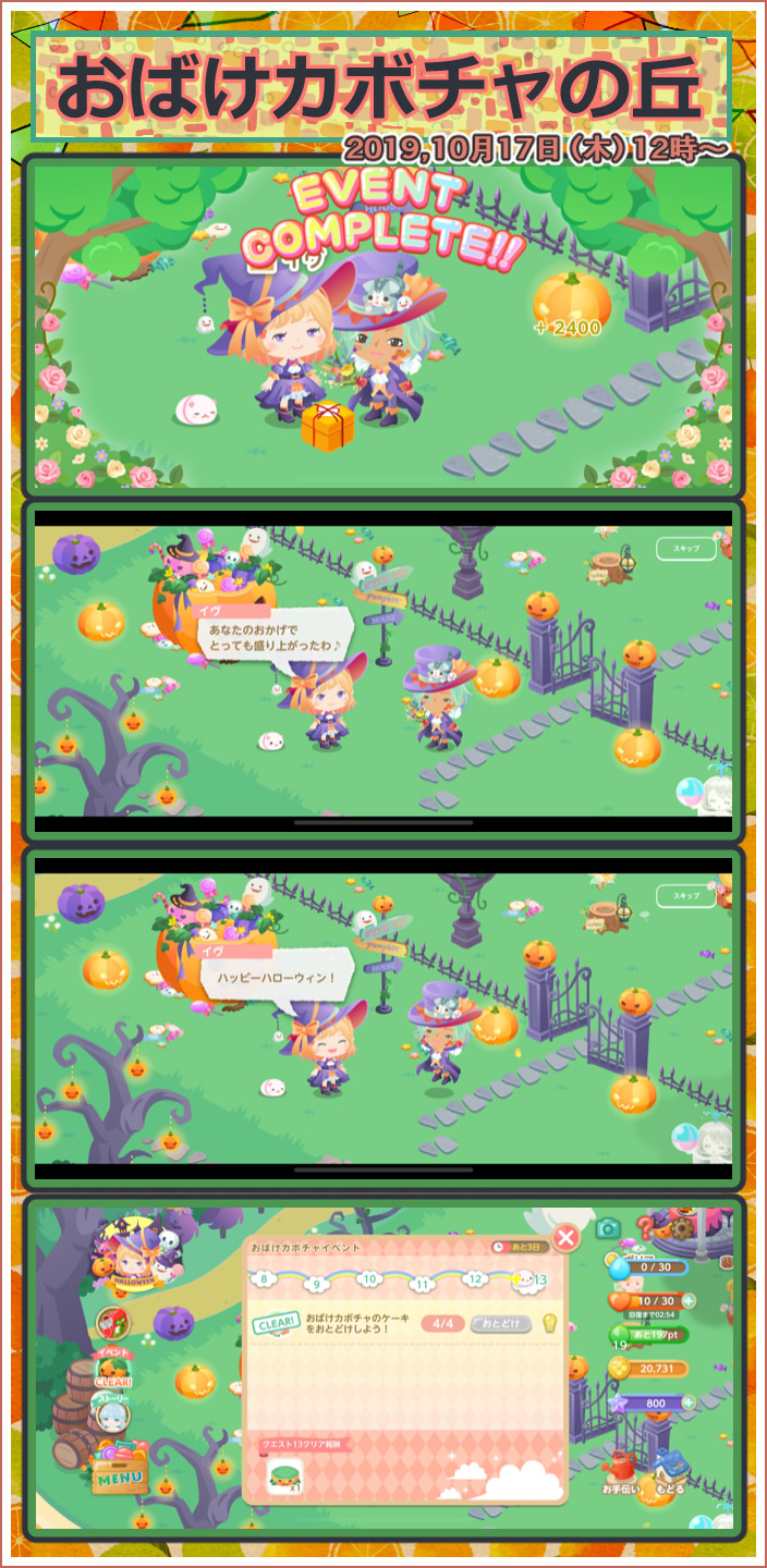 最初のイベントはそんなに難しくなくて良かったです。今後どうなっていくかは分かりませんが…(震) イベントの作物を植えて、収穫して、料理を作って、っていうこの一連の流れ作業が懐かしいですねぇemoji イベントはコンプしましたが、お皿集めがまだなので引き続きかぼちゃの収穫をがんばります笑emoji