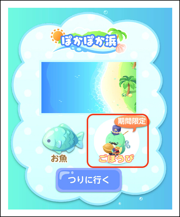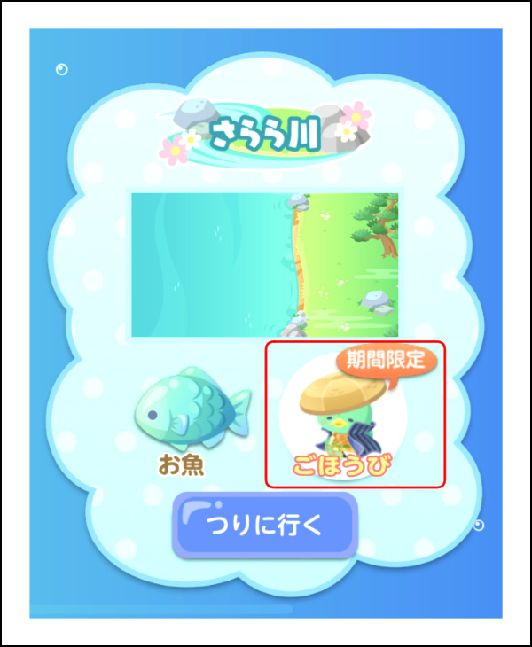 釣り場で指定のお魚を釣って、限定ごほうびGET