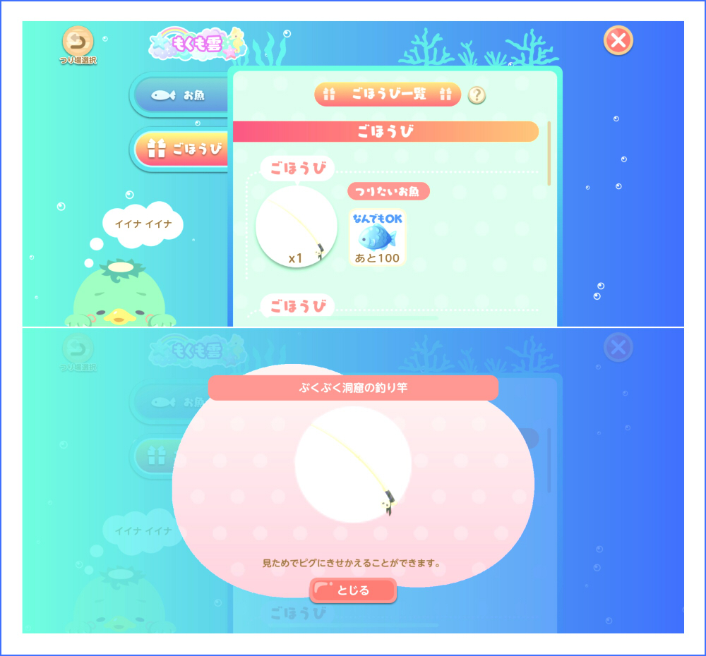 ぶくぶく洞窟でお魚を釣ると、豪華なごほうびが貰えるよ