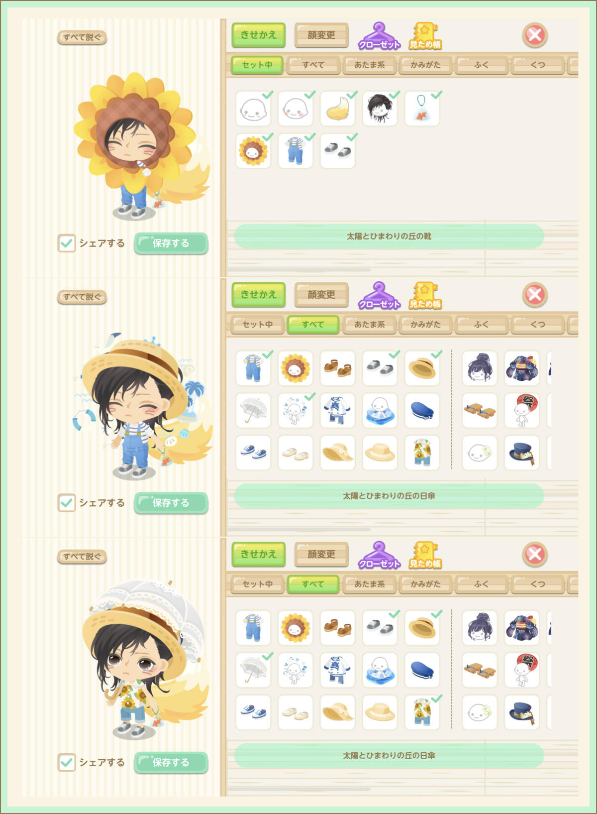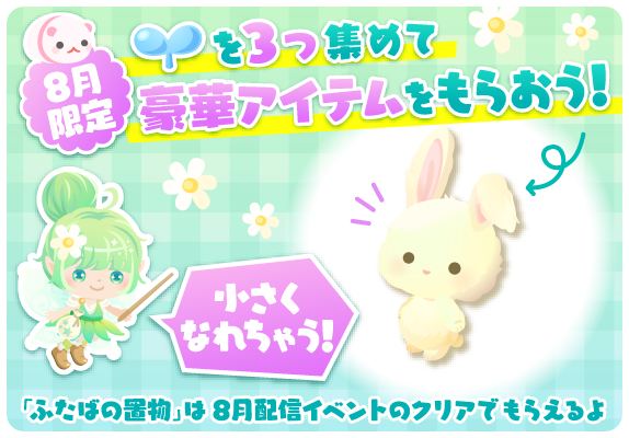 8月配信のイベント3つをクリアで貰えるアイテムらしいです。全身着ぐるみは初めて貰える気がします。