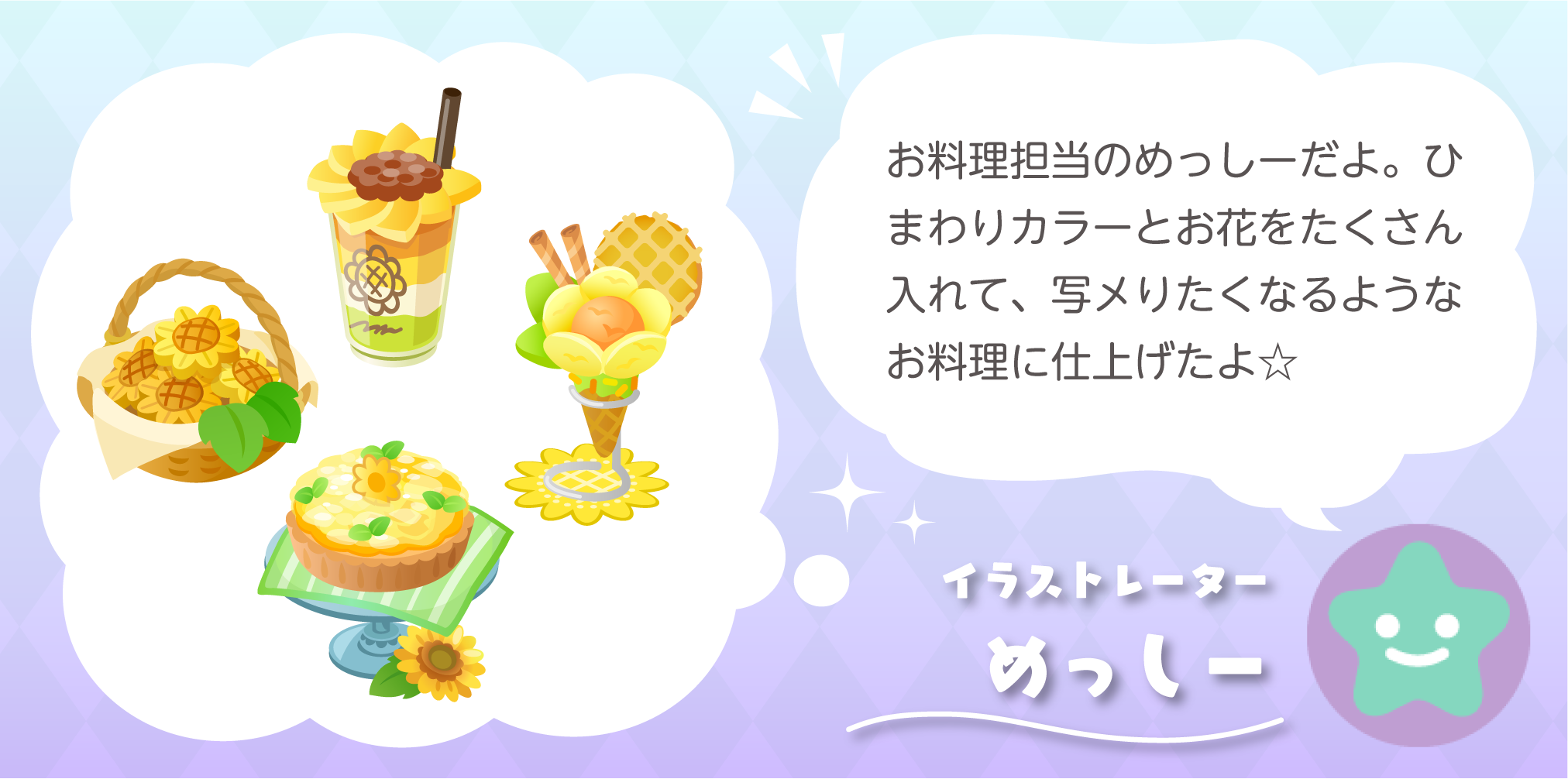 食品サンプルは“ひまわりのアイス”まで作りました。あと“ひまわりのタルト”を作ったら完了です。ブルーシエルのお皿作りとスピカのおねがいクエストがあるので後回しですけどねemoji