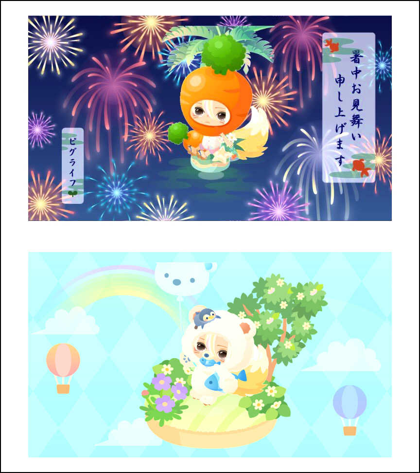8月のもようがえアイテム交換お祭り妖怪たちのデコemoji,鉢巻おばけのテーブルemoji。400コイン課金emoji 久しぶりにモグの模様替えアイテムの交換をしました。最近は可愛いアイテムがなかったので(´・ω・) 個人的にですけどね。