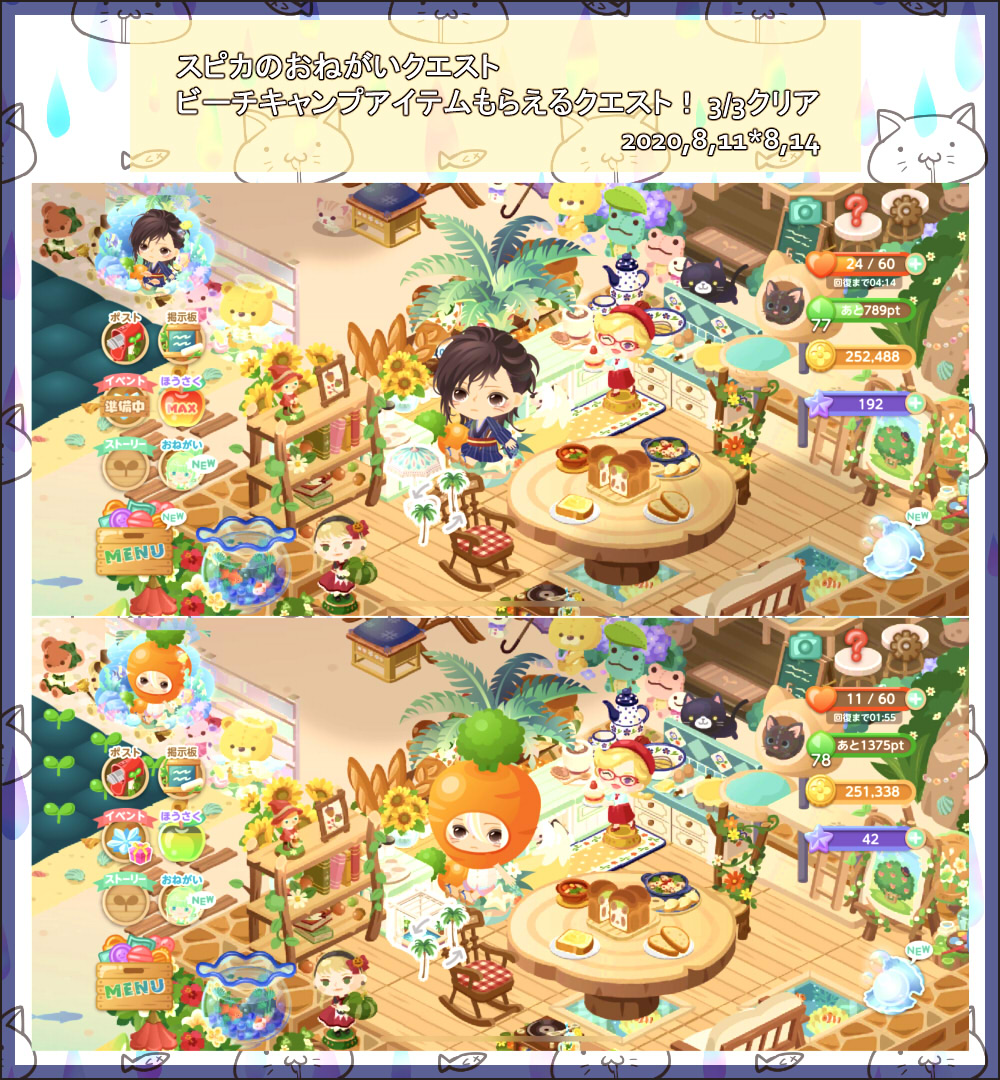 (2020,8,11*14...ビーチキャンプアイテムがもらえるクエスト 3/3コンプリート!)