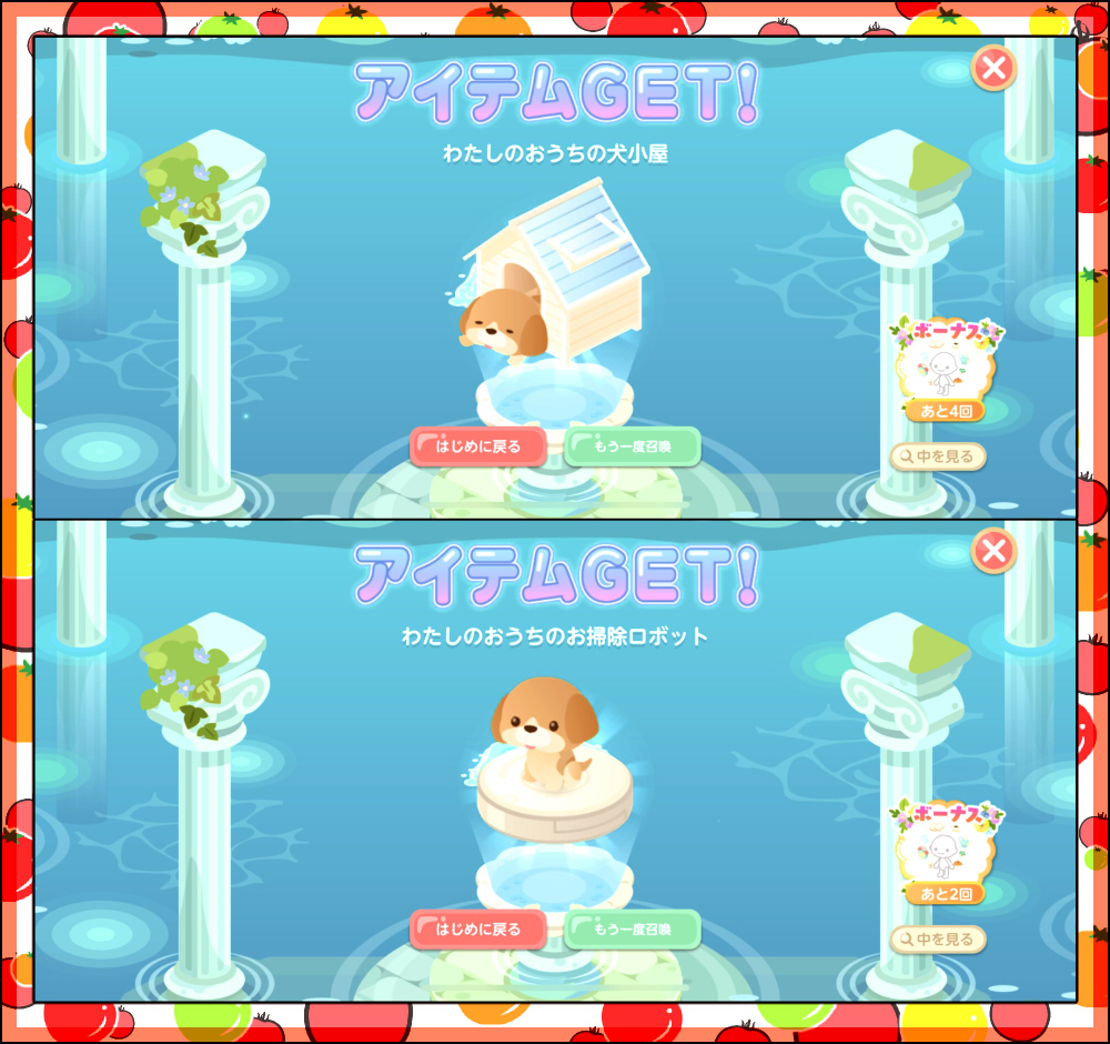 激レアは出ていません(^ω^) いつも通り。欲しかった犬小屋emojiが2個当たったので良いです。